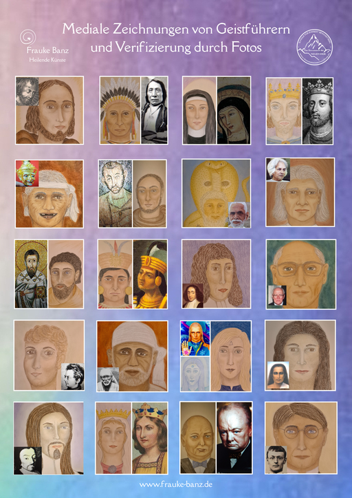 Manche Wesen, die sich als Geistführer für eine Person zeigen, lassen sich nach der Fertigstellung der Zeichnung anhand eines Fotos verifizieren. Die Übereinstimmung und Ähnlichkeiten mit den tatsächlichen Aussehen des Wesens zu Lebzeiten sind oftmals verblüffend. Für mich selbst immer wieder ein Wunder, das ich ehrfürchtig betrachte. Nichts davon ist selbstverständlich.